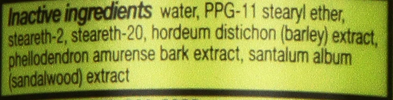 Water, PPG-11 Stearyl Ether, Steareth-2, Steareth-20, Sodium Silver Aluminum Silicate, Phellodendron Amurense Bark Extract, Santalum Album (Sandalwood) Extract, Hordeum Distichon (Barley) Extract, Fragrance, Disodium Edta.