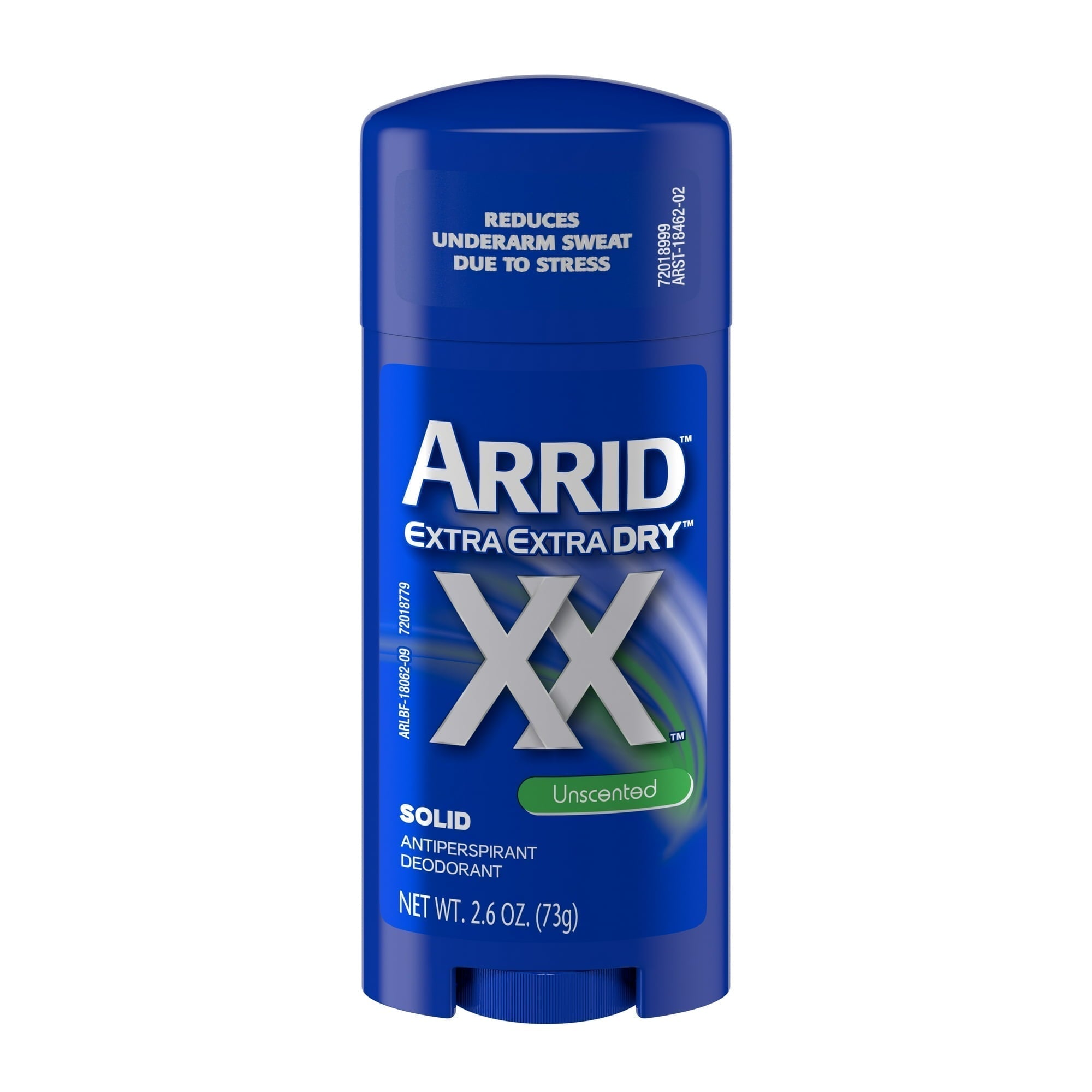 Arrid XX Extra Extra Dry, Solid Antiperspirant Deodorant, for Unisex, Unscented 2.6 Ounce (Pack Of 5) This ARRID XX Extra Extra Dry antiperspirant deodorant decreases underarm wetness and reduces underarm sweating due to stress. ARRID performs best when you need it most! The Ultra Fresh scent keeps you smelling clean while keeping your underarms dry. Feel Extra Extra dry at home or on the go with this 2.6 oz solid deodorant stick. Arrid deodorant should be applied on the underarm area only. You can take this maximum-strength solid deodorant, anti-perspirant with you when you travel or keep it in your medicine cabinet for convenience.