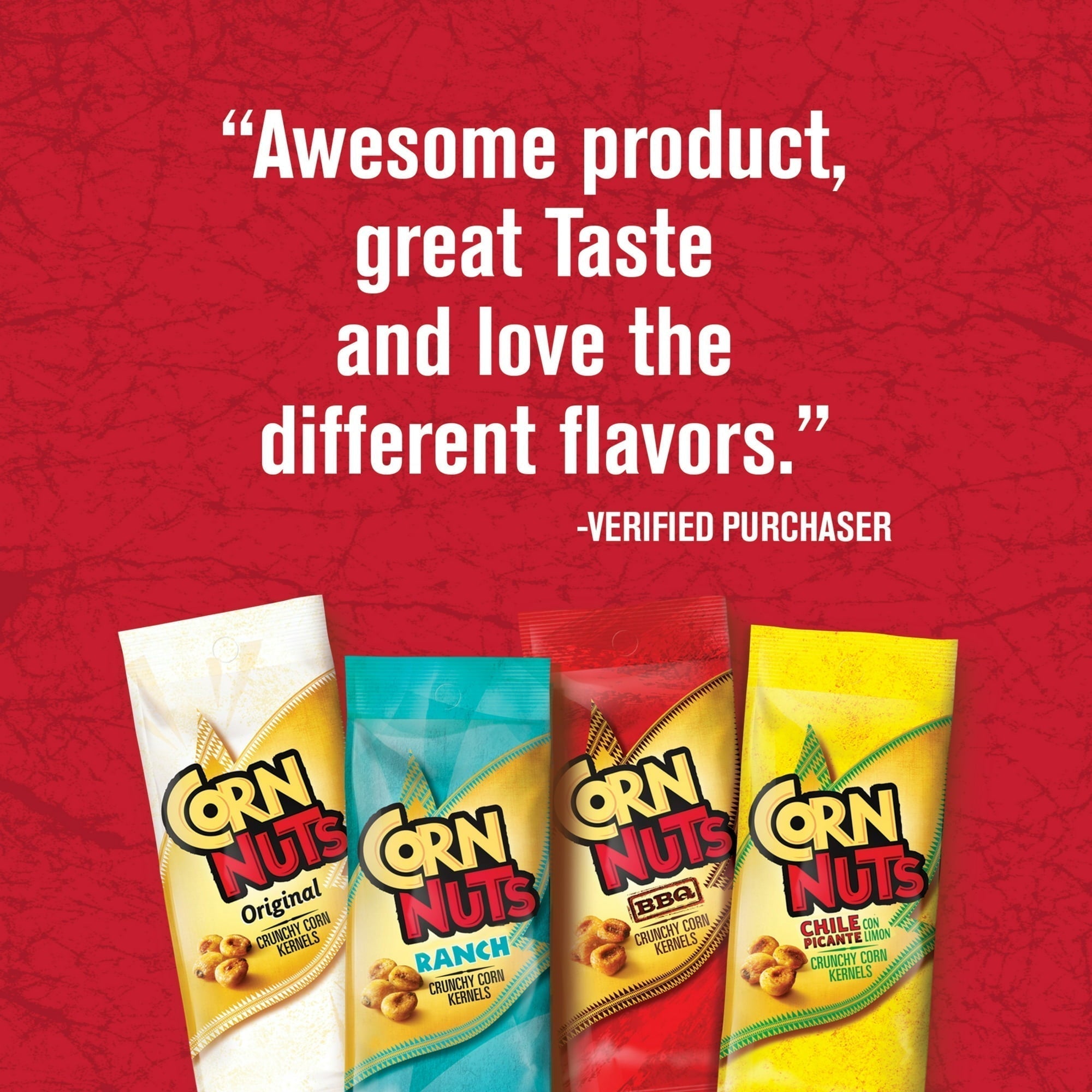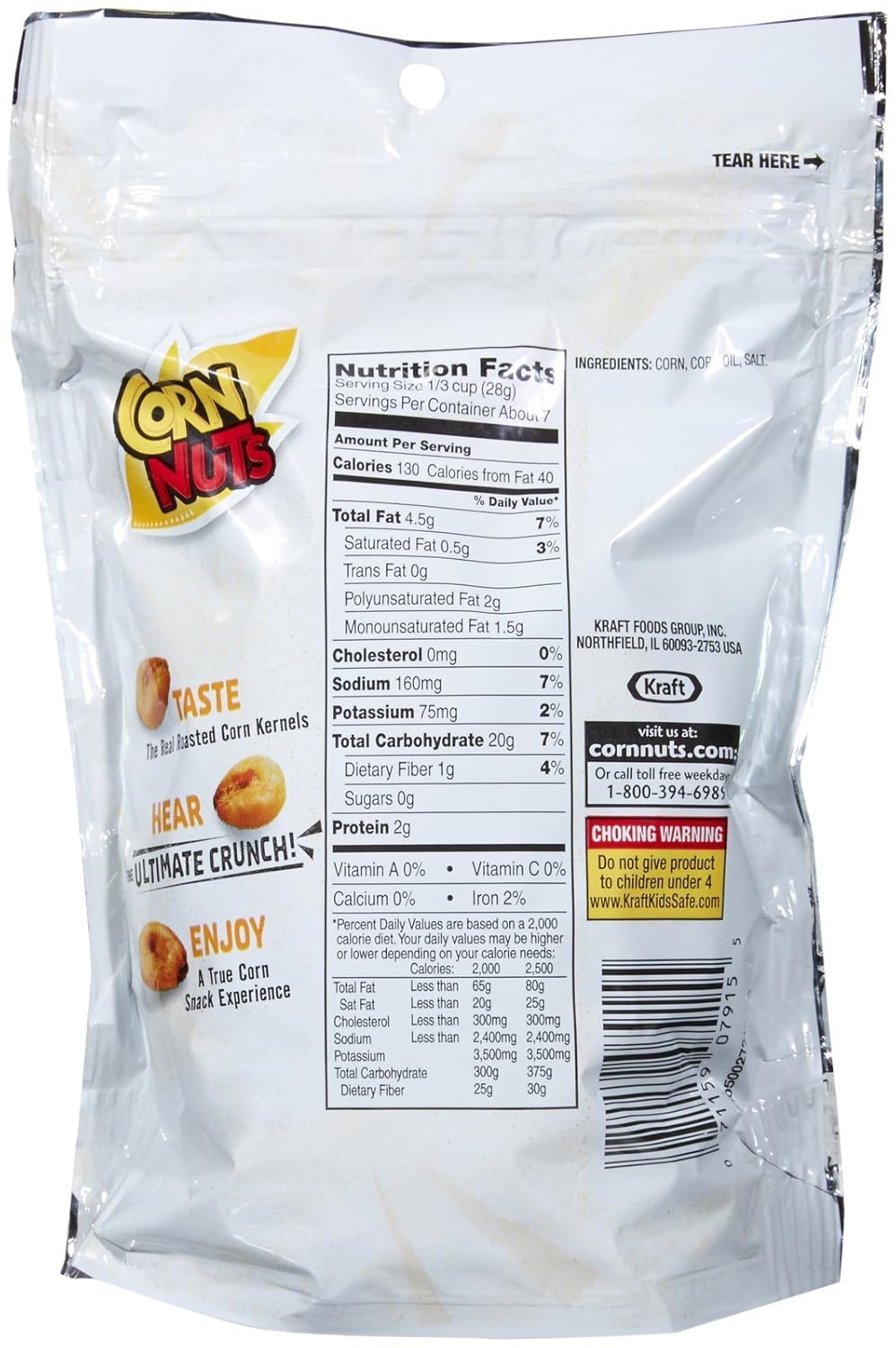 CORN NUTS Original Crunchy Corn Kernels Snack, Ready-to-Eat, Shelf-Stable, Resealable For Freshness, 7 Ounce (Pack Of 6) CORN NUTS Original Crunchy Corn Kernels Snack delivers that delicious flavor you love along with the irresistible crunch you can't get enough of. Keep a bag of these shelf stable, ready-to-eat roasted CORN NUTS Kernels by your side to curb those snack cravings when hanging out and playing video games or share a bowl with family and friends on movie night. An ideal party or mid-afternoon snack; these CORN NUTS Kernels pair perfectly with your favorite soda and are a flavorful alternative to chips or crackers.