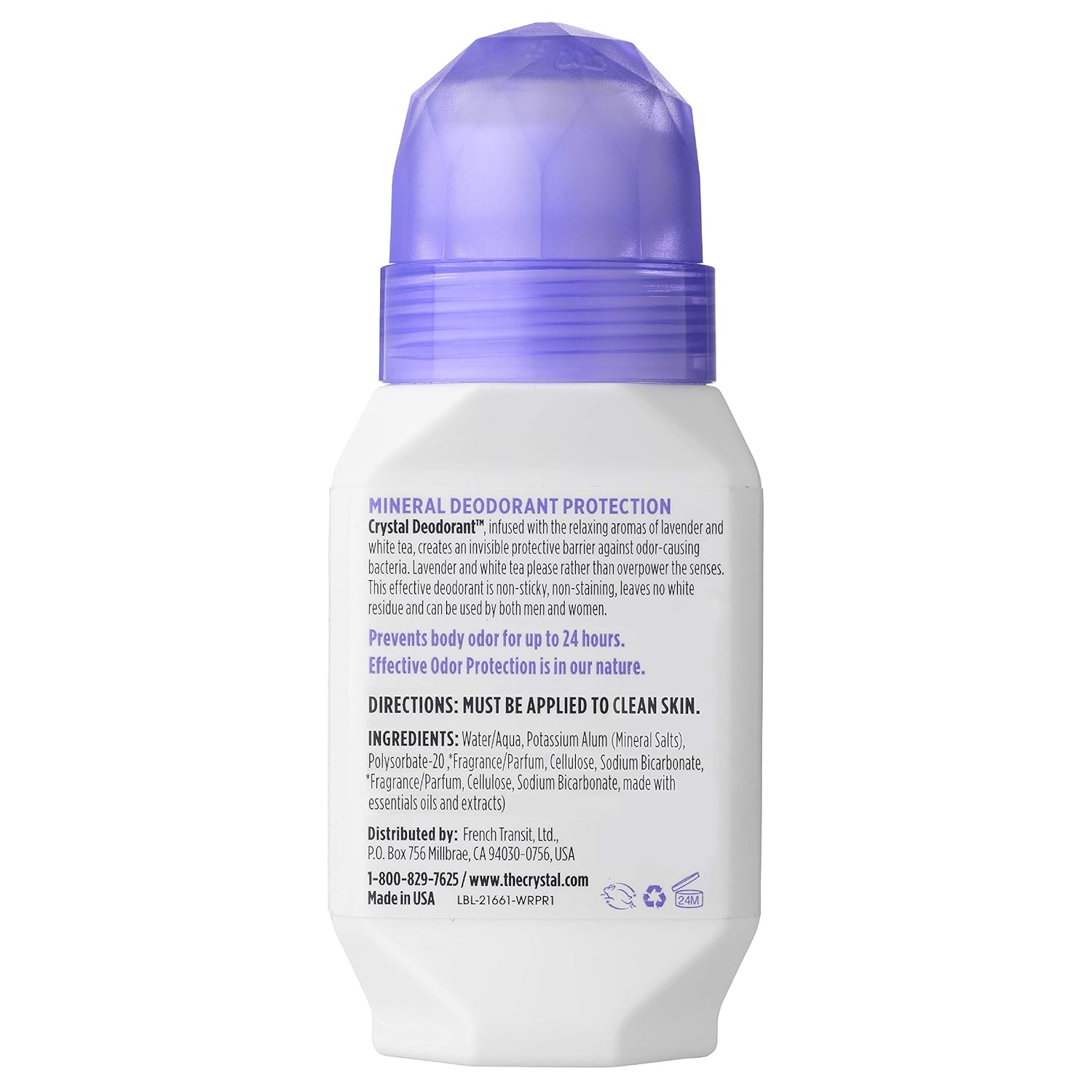 Crystal Mineral Deodorant Roll On Lavender & White Tea 2.25oz (12 Pack) CRYSTAL Mineral Deodorant Roll-On is infused with the calming and fresh aromas of lavender and white tea rapidly dries to provide an invisible, protective barrier that blocks odor before it starts. Made for every body A natural deodorant that performs equally great as both a men's deodorant and women's deodorant, CRYSTAL Mineral Deodorant Roll-On prevents odor safely for up to 24 hours.