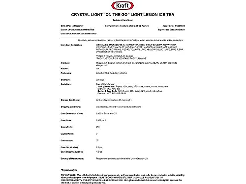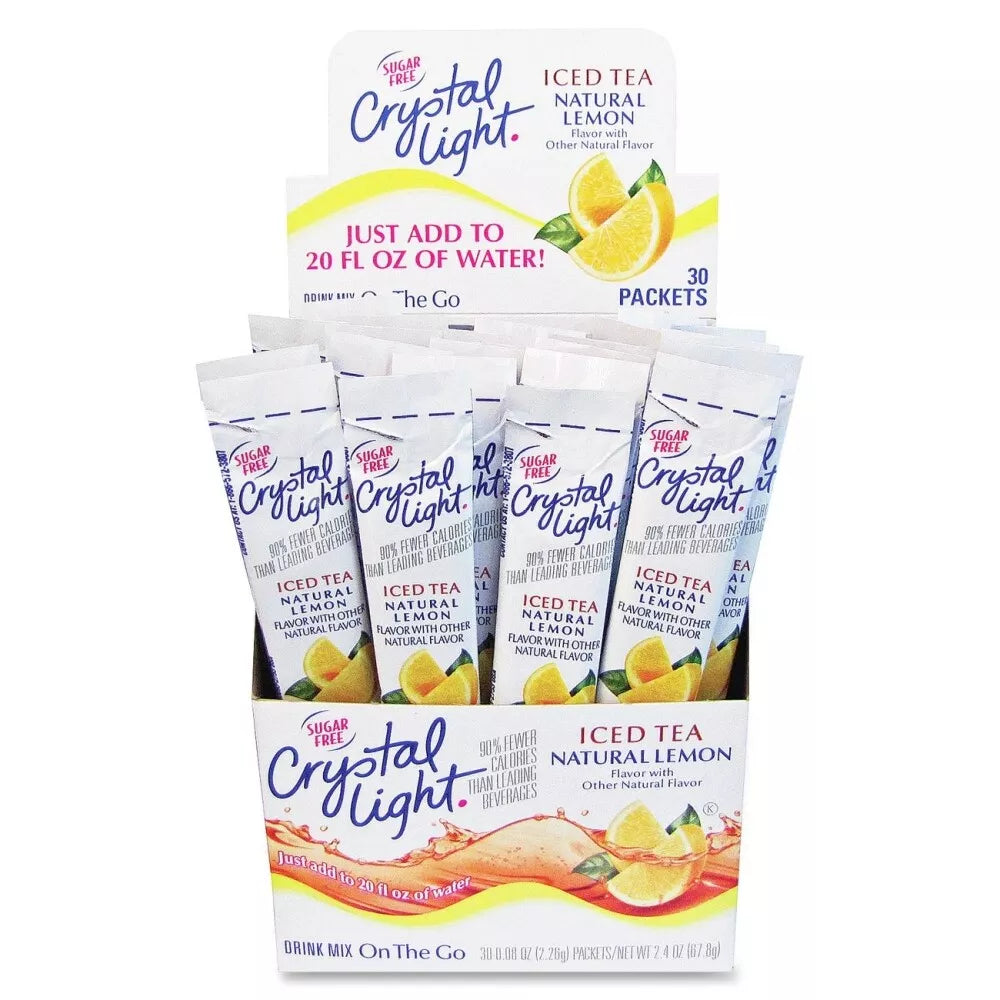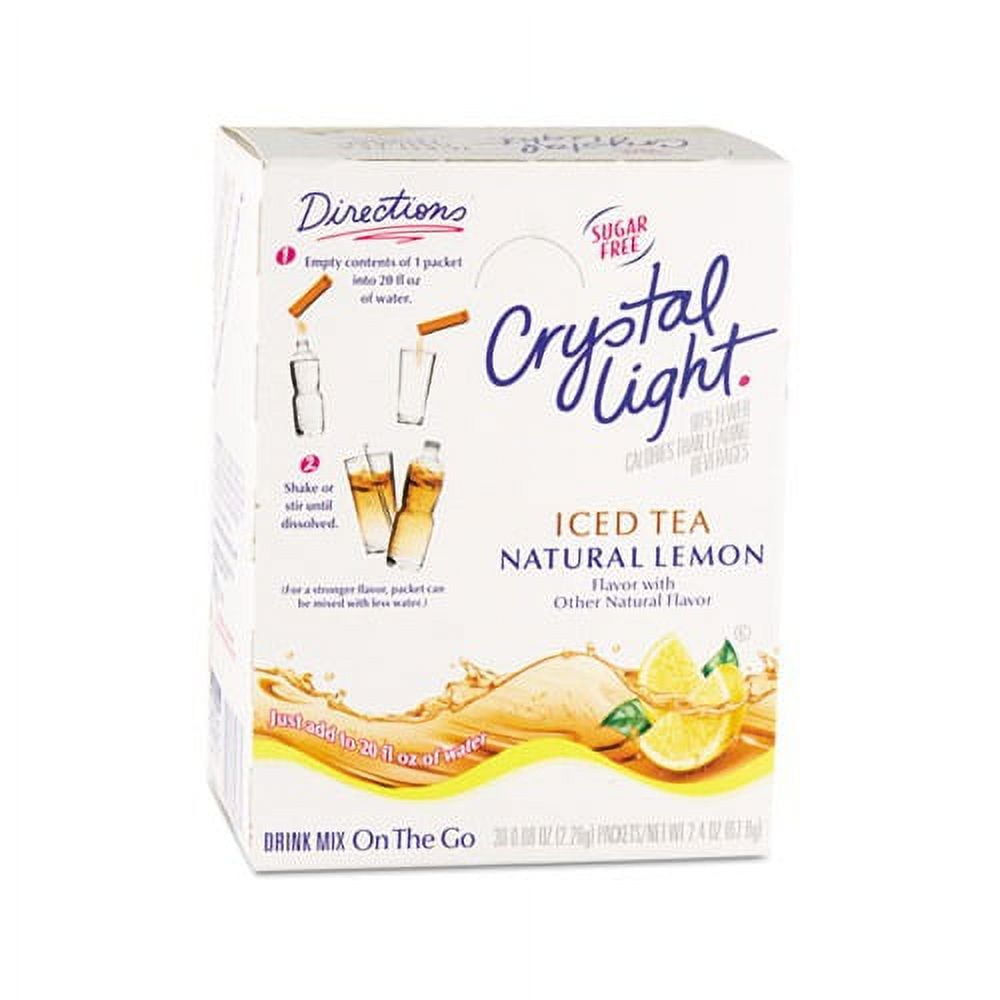 Crystal Light On-the-Go-Iced-Tea-OTG-Mix Lemonade Sticks Powder, Lemonade Flavor, 0.17 oz 30 Count (Pack Of 24) Crystal Light On-The-Go Mix Sticks offer a low-calorie beverage alternative. Simply pour the contents of the stick into a 20 oz. bottle of water or a glass with 2-1/2 cups of water for a refreshing treat that tastes like delicious peach tea. Sticks are a simple way to enjoy hydration on the go. Crystal light drink has 5 calories per serving. Sugar-free