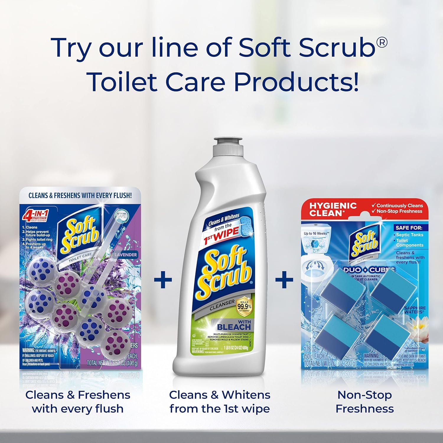 Soft Scrub 4-in-1 Rim Hanger Toilet Bowl Cleaner, Lavender, 2 Count (Pack Of 4) Soft Scrub 4-in-1 Toilet Care cleans your toilet bowl and prevents future build-up. Use Soft Scrub 4-in-1 rim hangers to fight toilet ring and freshen for up to 4 weeks. Each Soft Scrub 4-in-1 rim hanger has a fragrance boost to give a boost of freshness to the last flash.