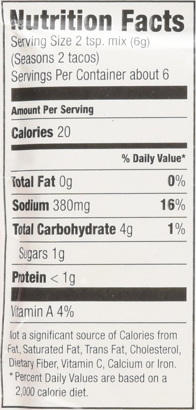 McCormick Taco Seasoning Mix Powder, Less Sodium, No Artificial Flavors, Gluten-Free, 1.25 Ounce (Pack Of 6) McCormick Gluten Free Taco Seasoning Mix is a zesty blend of authentic Mexican seasonings, including onions & peppers, that will turn ordinary food into a fiesta of flavor. Taco Seasoning has a hearty flavor that's not too spicy but warm enough to complement a variety of meats. McCormick spices like chili pepper, cumin and paprika, this taco seasoning mix has the power to turn Taco Tuesday