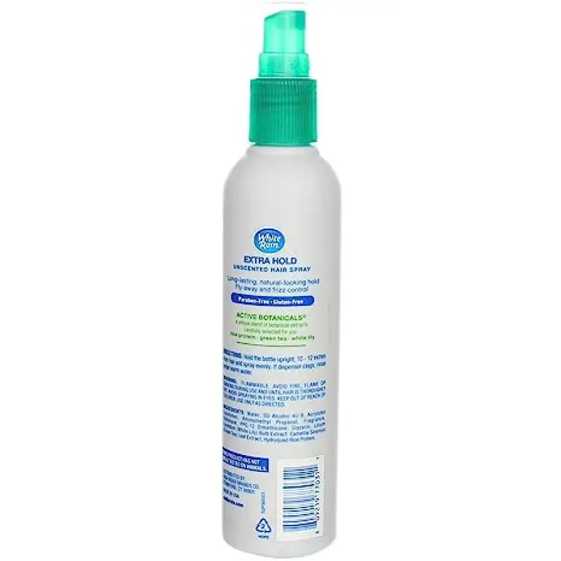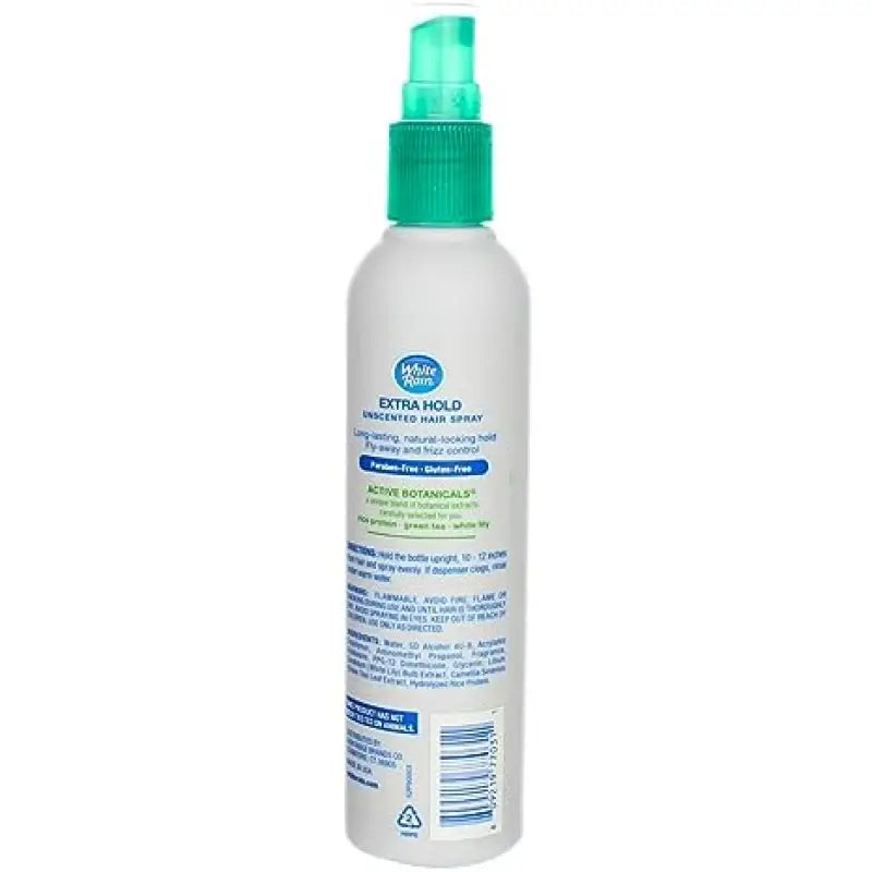 White Rain Non-Aerosol Hair Spray Unscented Extra Hold 7 Ounce (Pack Of 50) White Rain Advanced Formula Extra Hold Hair Spray is an unscented, long-lasting hair spray that provides a stronghold and a natural-looking finish. This is a perfect styling companion for achieving a flawless and long-lasting hairstyle without overpowering fragrances. For extra boost and hold; Long-lasting hold frizz control; Provitamin B5; With provitamin B5. Our Extreme Hold Unscented Aerosol Hairsprays provide your hair with a natural-looking hold and control.